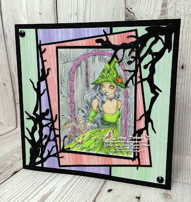 Such a great selection of digi papers on your card. I love the colours you chose! Gorgeous image and suitably 'creepy' with the branches extending in towards the image. A lovely card! Thanks so much for sharing it with us at Penny's!